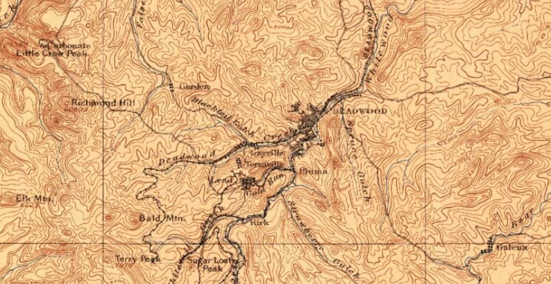 Historic 1894 Deadwood South Dakota 30'x30' Topo Map