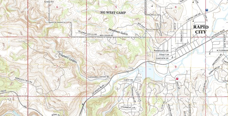 Get a detailed MyTopo topographic map or aerial/satellite map of any location in South Dakota or the U.S. Simply search for the area, set a center point, and choose your map options. Begin here: