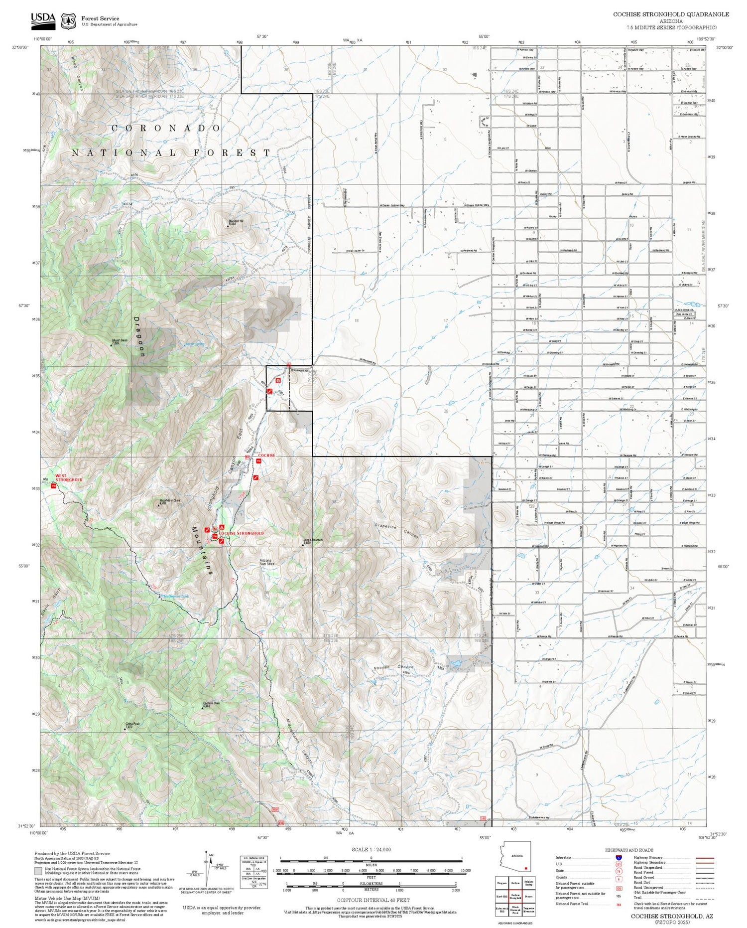 2025 Forest Service Topo Map of Cochise Stronghold Arizona