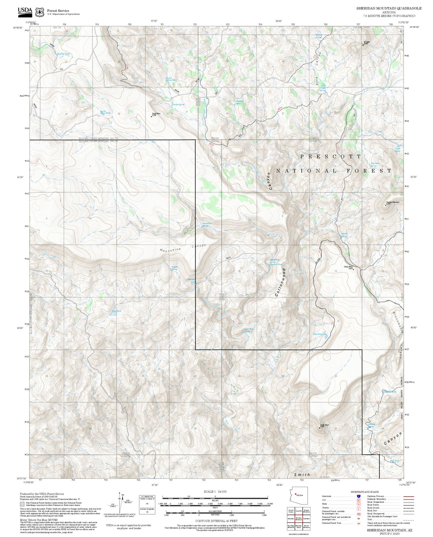 2025 Forest Service Topo Map of Sheridan Mountain Arizona