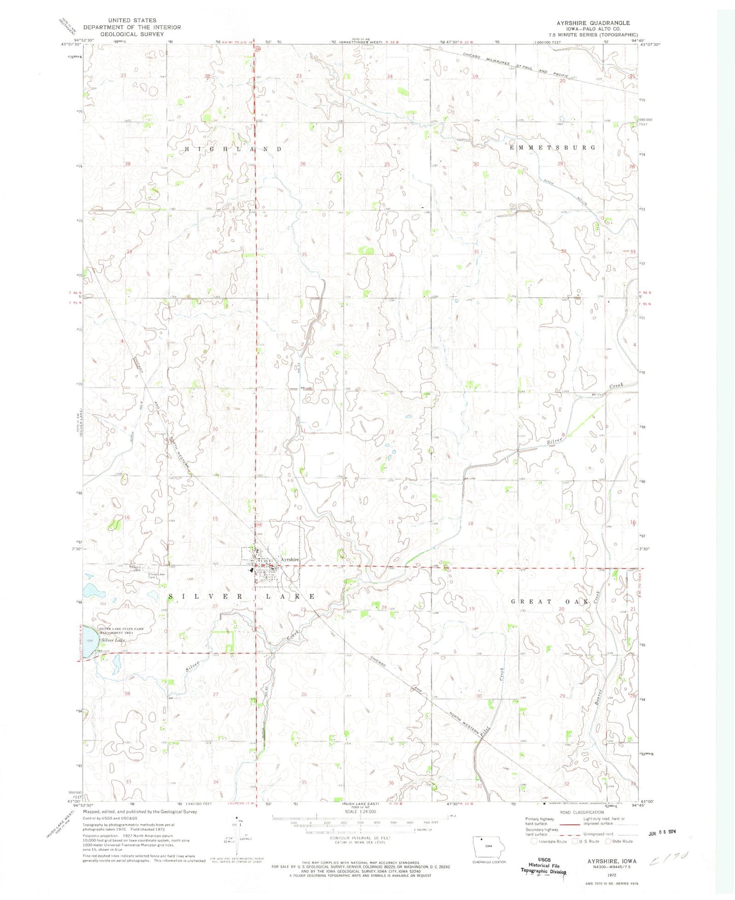 Classic USGS Ayrshire Iowa 7.5'x7.5' Topo Map