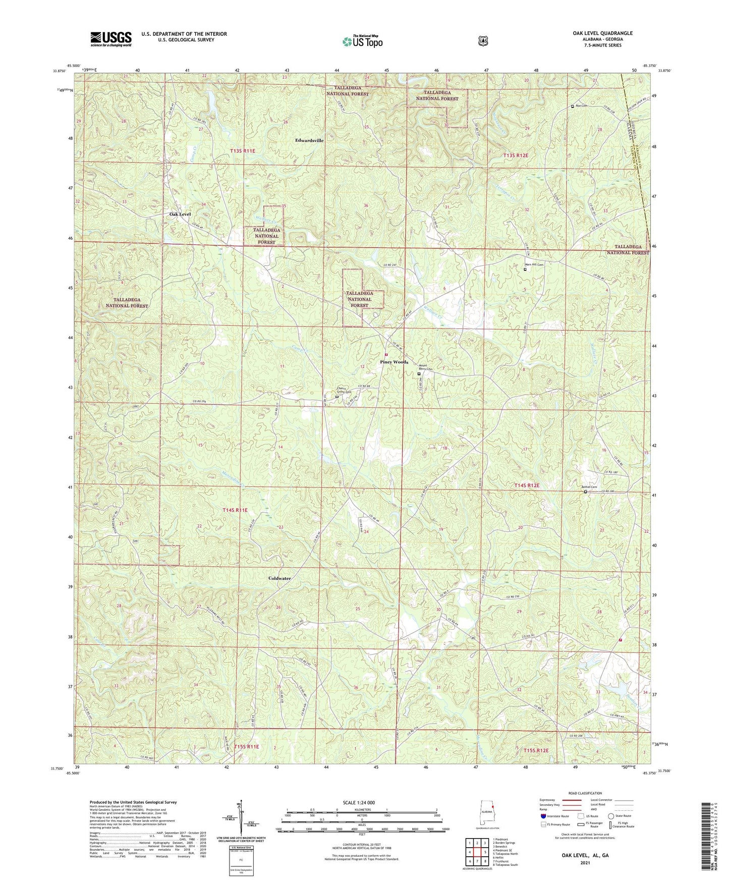 2024 topographic map quadrangle Oak Level in the state of Alabama. Scale: 1:24000. Based on the newly updated USGS 7.5' US Topo map series, this map is in the following counties: Cleburne, Haralson. The map contains contour data, water features, and other items you are used to seeing on USGS maps, but also has updated roads and other features. This is the next generation of topographic maps. Printed on high-quality waterproof paper with UV fade-resistant inks.