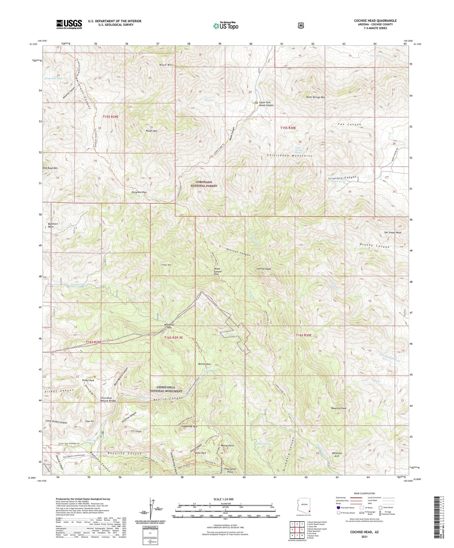 2021 topographic map quadrangle Cochise Head in the state of Arizona. Scale: 1:24000. Based on the newly updated USGS 7.5' US Topo map series, this map is in the following counties: Cochise. The map contains contour data, water features, and other items you are used to seeing on USGS maps, but also has updated roads and other features. This is the next generation of topographic maps. Printed on high-quality waterproof paper with UV fade-resistant inks.