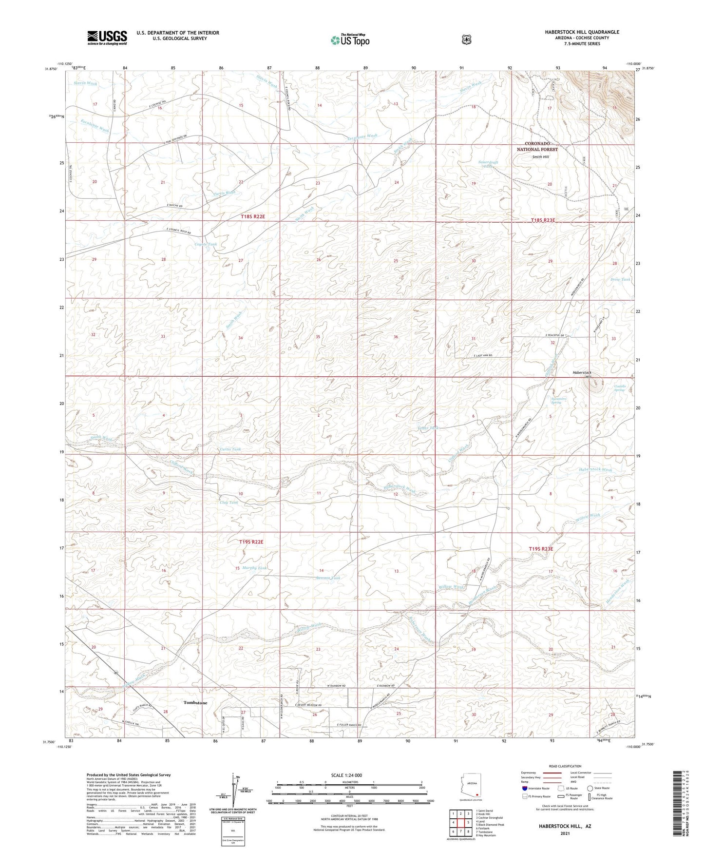 2021 topographic map quadrangle Haberstock Hill in the state of Arizona. Scale: 1:24000. Based on the newly updated USGS 7.5' US Topo map series, this map is in the following counties: Cochise. The map contains contour data, water features, and other items you are used to seeing on USGS maps, but also has updated roads and other features. This is the next generation of topographic maps. Printed on high-quality waterproof paper with UV fade-resistant inks.