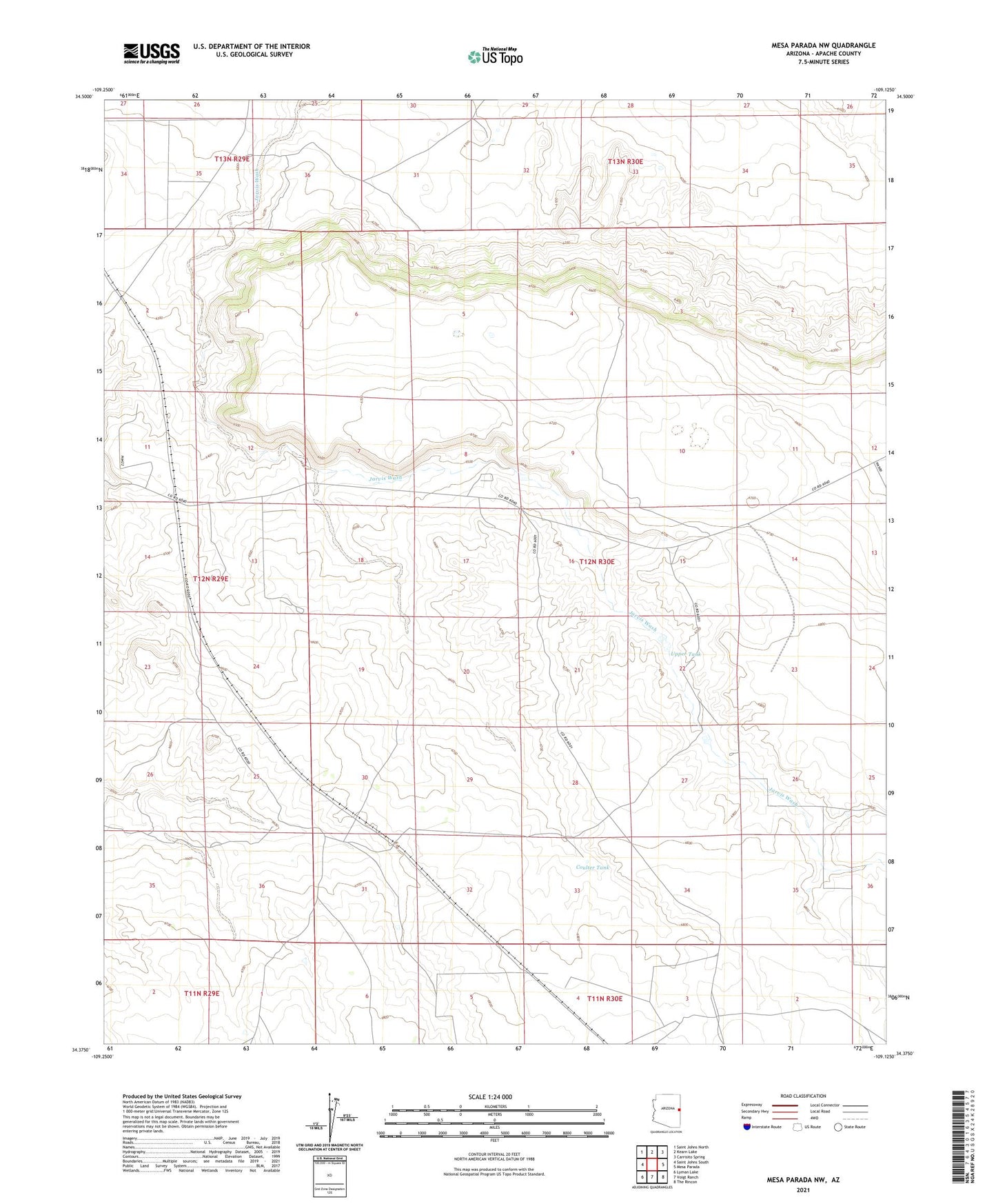 2021 topographic map quadrangle Mesa Parada NW in the state of Arizona. Scale: 1:24000. Based on the newly updated USGS 7.5' US Topo map series, this map is in the following counties: Apache. The map contains contour data, water features, and other items you are used to seeing on USGS maps, but also has updated roads and other features. This is the next generation of topographic maps. Printed on high-quality waterproof paper with UV fade-resistant inks.