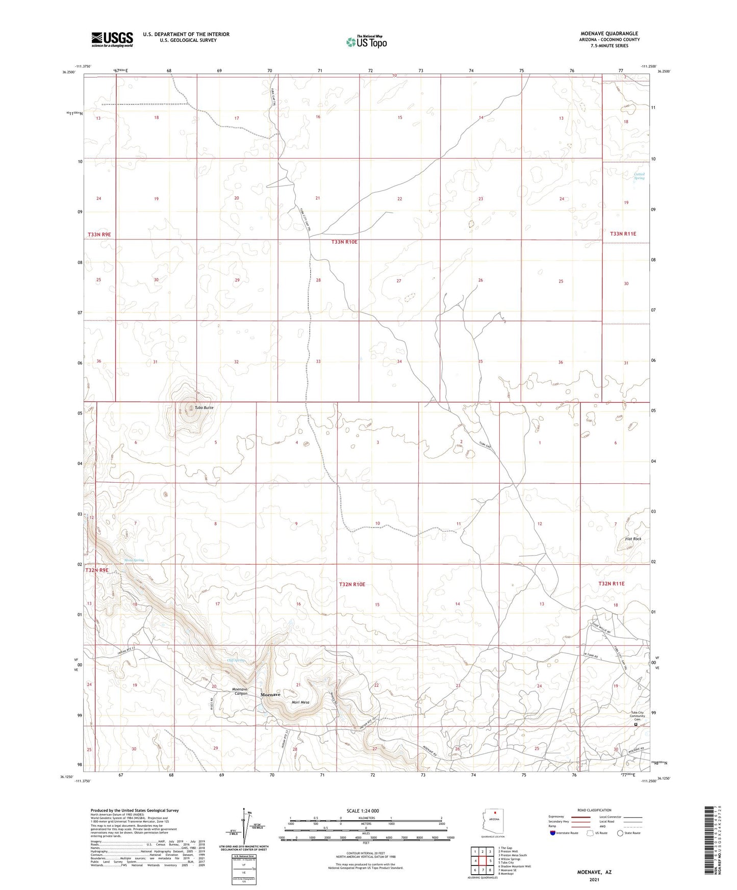 2021 topographic map quadrangle Moenave in the state of Arizona. Scale: 1:24000. Based on the newly updated USGS 7.5' US Topo map series, this map is in the following counties: Coconino. The map contains contour data, water features, and other items you are used to seeing on USGS maps, but also has updated roads and other features. This is the next generation of topographic maps. Printed on high-quality waterproof paper with UV fade-resistant inks.