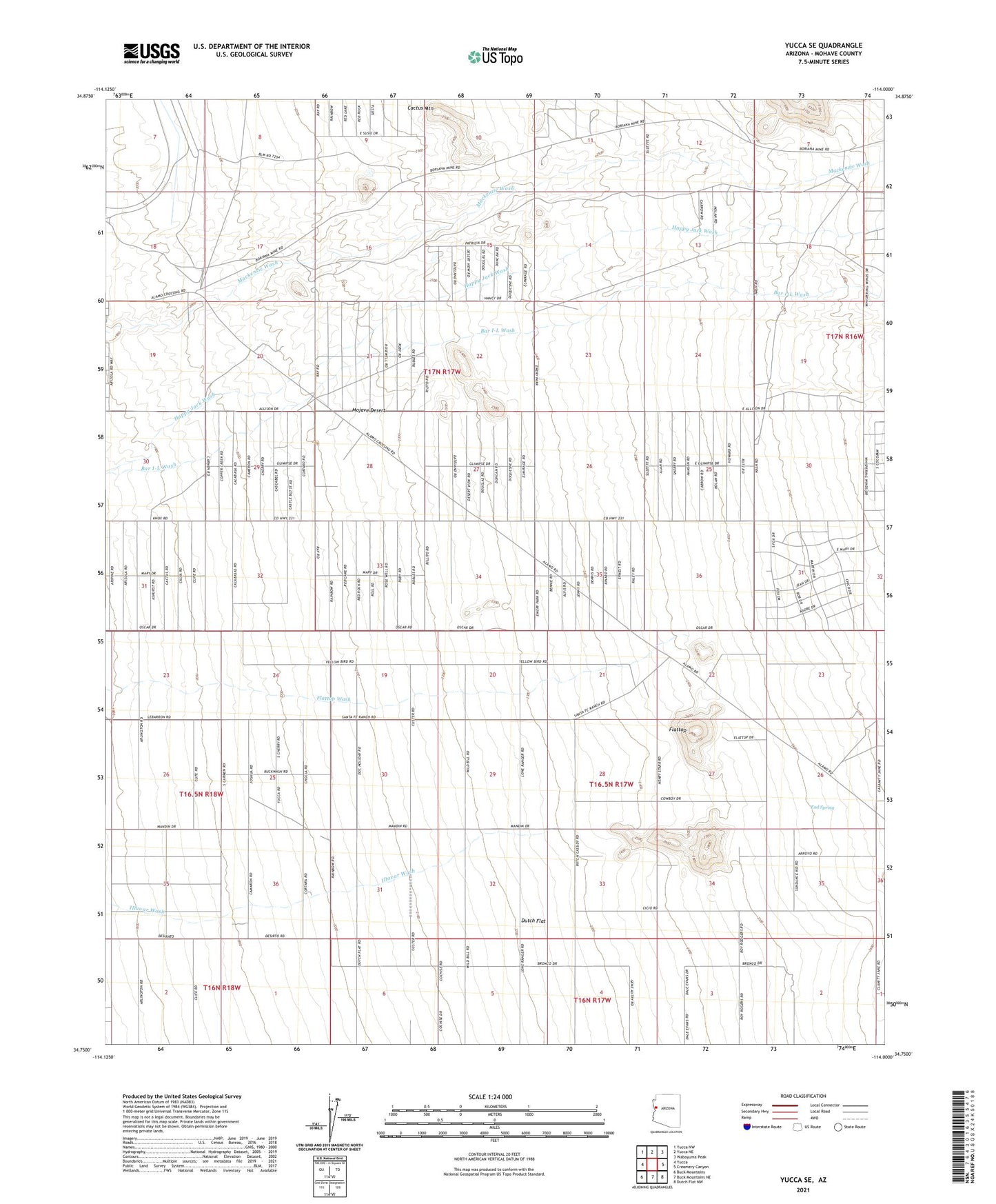 2021 topographic map quadrangle Yucca SE in the state of Arizona. Scale: 1:24000. Based on the newly updated USGS 7.5' US Topo map series, this map is in the following counties: Mohave. The map contains contour data, water features, and other items you are used to seeing on USGS maps, but also has updated roads and other features. This is the next generation of topographic maps. Printed on high-quality waterproof paper with UV fade-resistant inks.