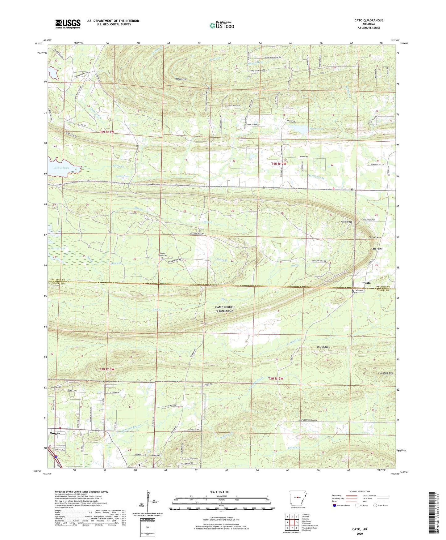 2024 topographic map quadrangle Cato in the state of Arkansas. Scale: 1:24000. Based on the newly updated USGS 7.5' US Topo map series, this map is in the following counties: Faulkner, Pulaski. The map contains contour data, water features, and other items you are used to seeing on USGS maps, but also has updated roads and other features. This is the next generation of topographic maps. Printed on high-quality waterproof paper with UV fade-resistant inks.