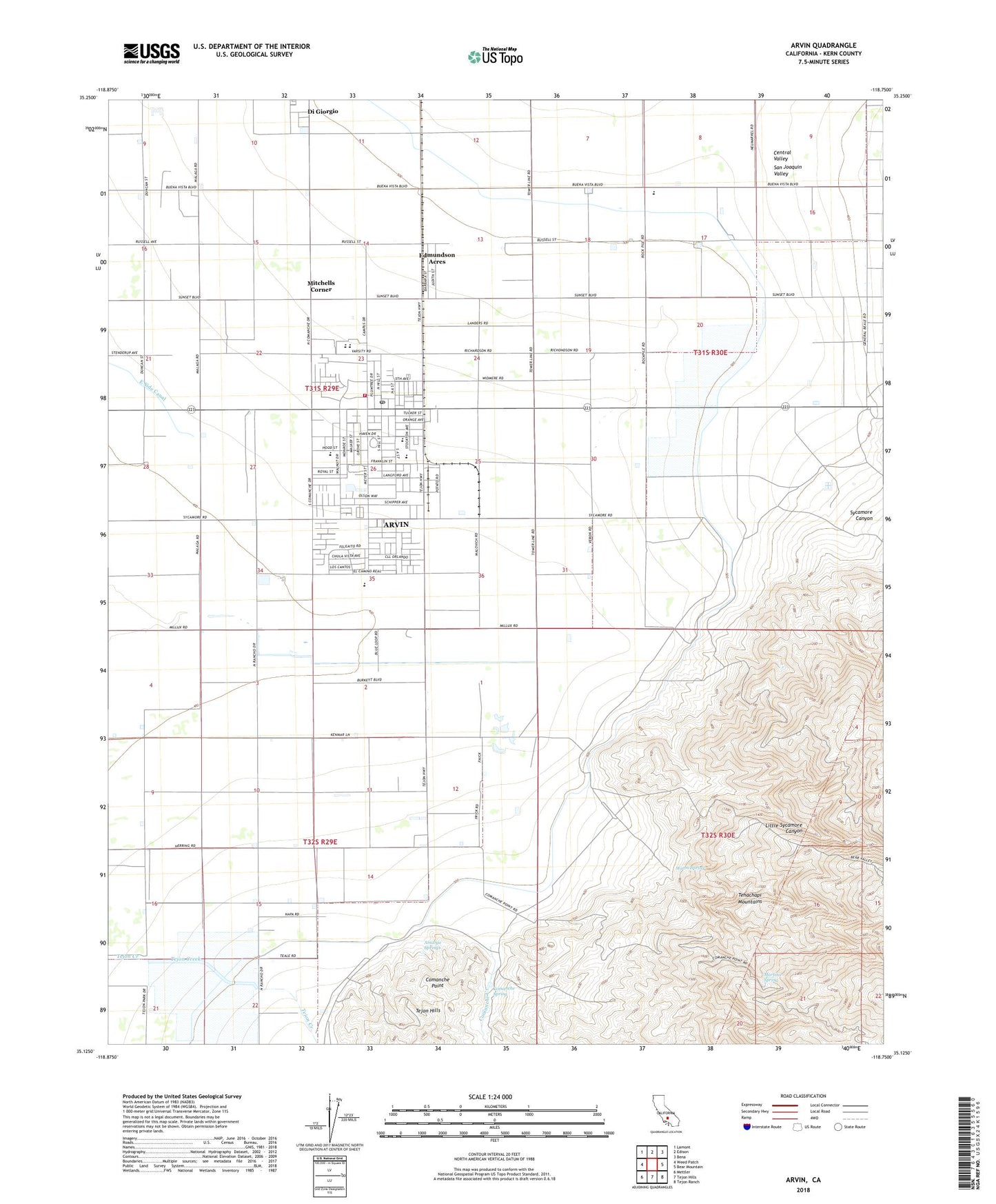 2021 topographic map quadrangle Arvin in the state of California. Scale: 1:24000. Based on the newly updated USGS 7.5' US Topo map series, this map is in the following counties: Kern. The map contains contour data, water features, and other items you are used to seeing on USGS maps, but also has updated roads and other features. This is the next generation of topographic maps. Printed on high-quality waterproof paper with UV fade-resistant inks.