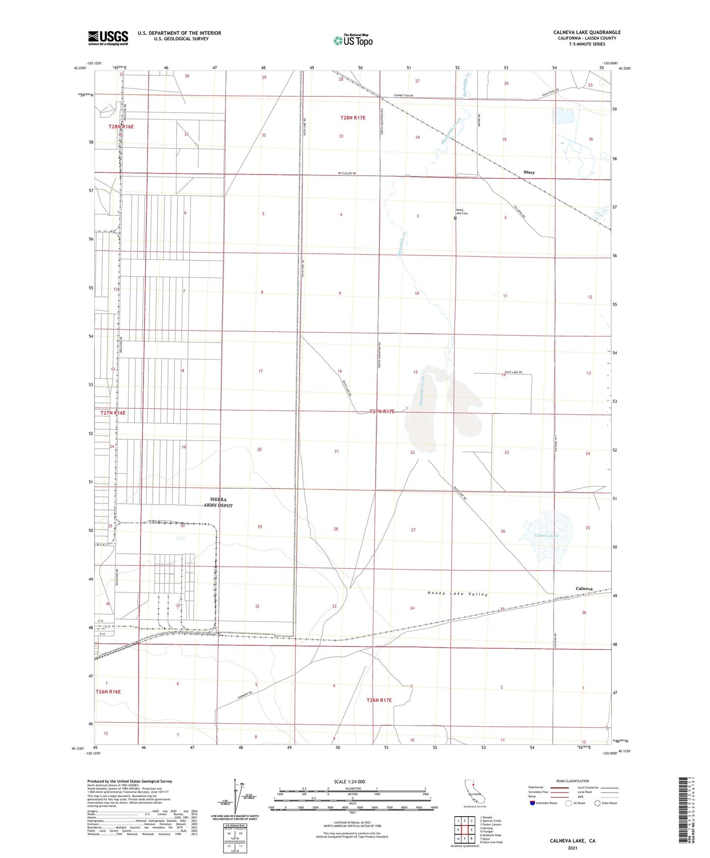 2021 topographic map quadrangle Calneva Lake in the state of California. Scale: 1:24000. Based on the newly updated USGS 7.5' US Topo map series, this map is in the following counties: Lassen. The map contains contour data, water features, and other items you are used to seeing on USGS maps, but also has updated roads and other features. This is the next generation of topographic maps. Printed on high-quality waterproof paper with UV fade-resistant inks.