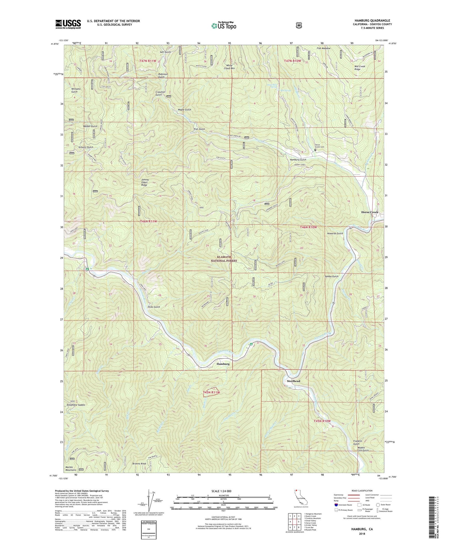 2022 topographic map quadrangle Hamburg in the state of California. Scale: 1:24000. Based on the newly updated USGS 7.5' US Topo map series, this map is in the following counties: Siskiyou. The map contains contour data, water features, and other items you are used to seeing on USGS maps, but also has updated roads and other features. This is the next generation of topographic maps. Printed on high-quality waterproof paper with UV fade-resistant inks.