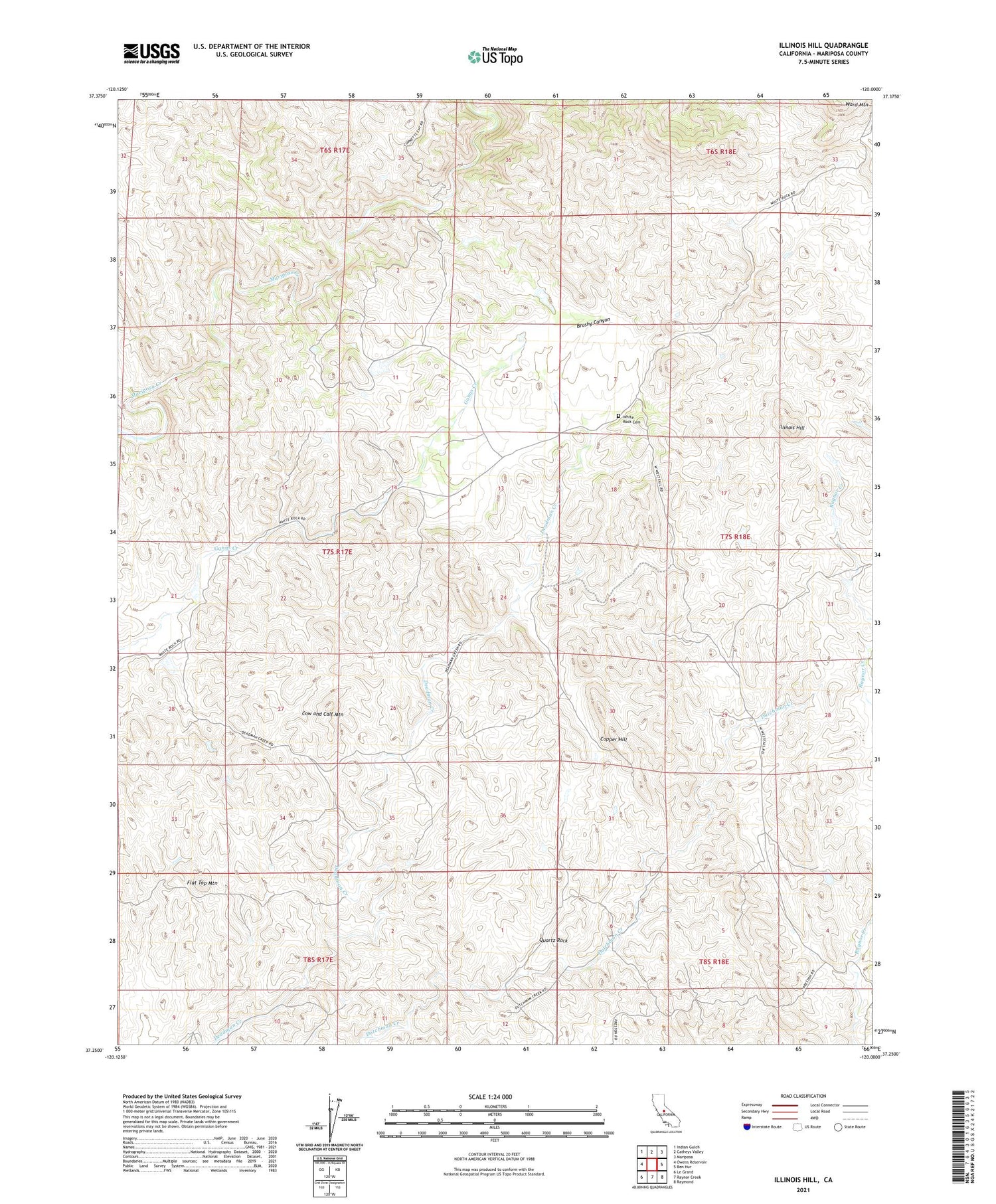 2021 topographic map quadrangle Illinois Hill in the state of California. Scale: 1:24000. Based on the newly updated USGS 7.5' US Topo map series, this map is in the following counties: Mariposa. The map contains contour data, water features, and other items you are used to seeing on USGS maps, but also has updated roads and other features. This is the next generation of topographic maps. Printed on high-quality waterproof paper with UV fade-resistant inks.