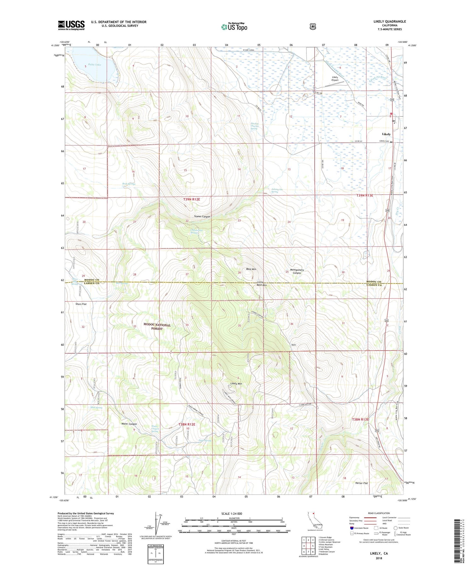 2021 topographic map quadrangle Likely in the state of California. Scale: 1:24000. Based on the newly updated USGS 7.5' US Topo map series, this map is in the following counties: Modoc, Lassen. The map contains contour data, water features, and other items you are used to seeing on USGS maps, but also has updated roads and other features. This is the next generation of topographic maps. Printed on high-quality waterproof paper with UV fade-resistant inks.