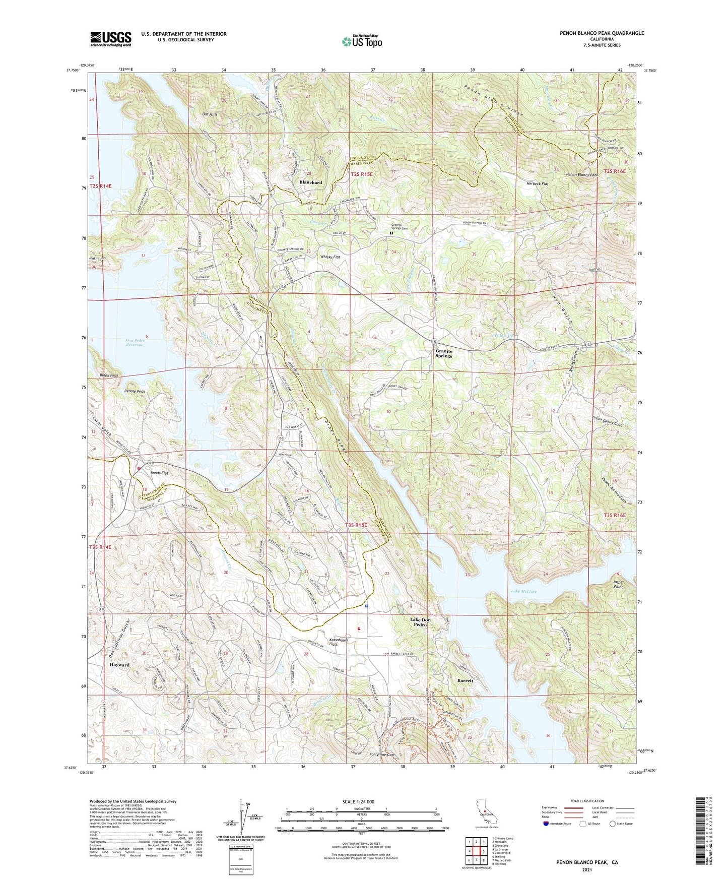 2021 topographic map quadrangle Penon Blanco Peak in the state of California. Scale: 1:24000. Based on the newly updated USGS 7.5' US Topo map series, this map is in the following counties: Mariposa, Tuolumne. The map contains contour data, water features, and other items you are used to seeing on USGS maps, but also has updated roads and other features. This is the next generation of topographic maps. Printed on high-quality waterproof paper with UV fade-resistant inks.