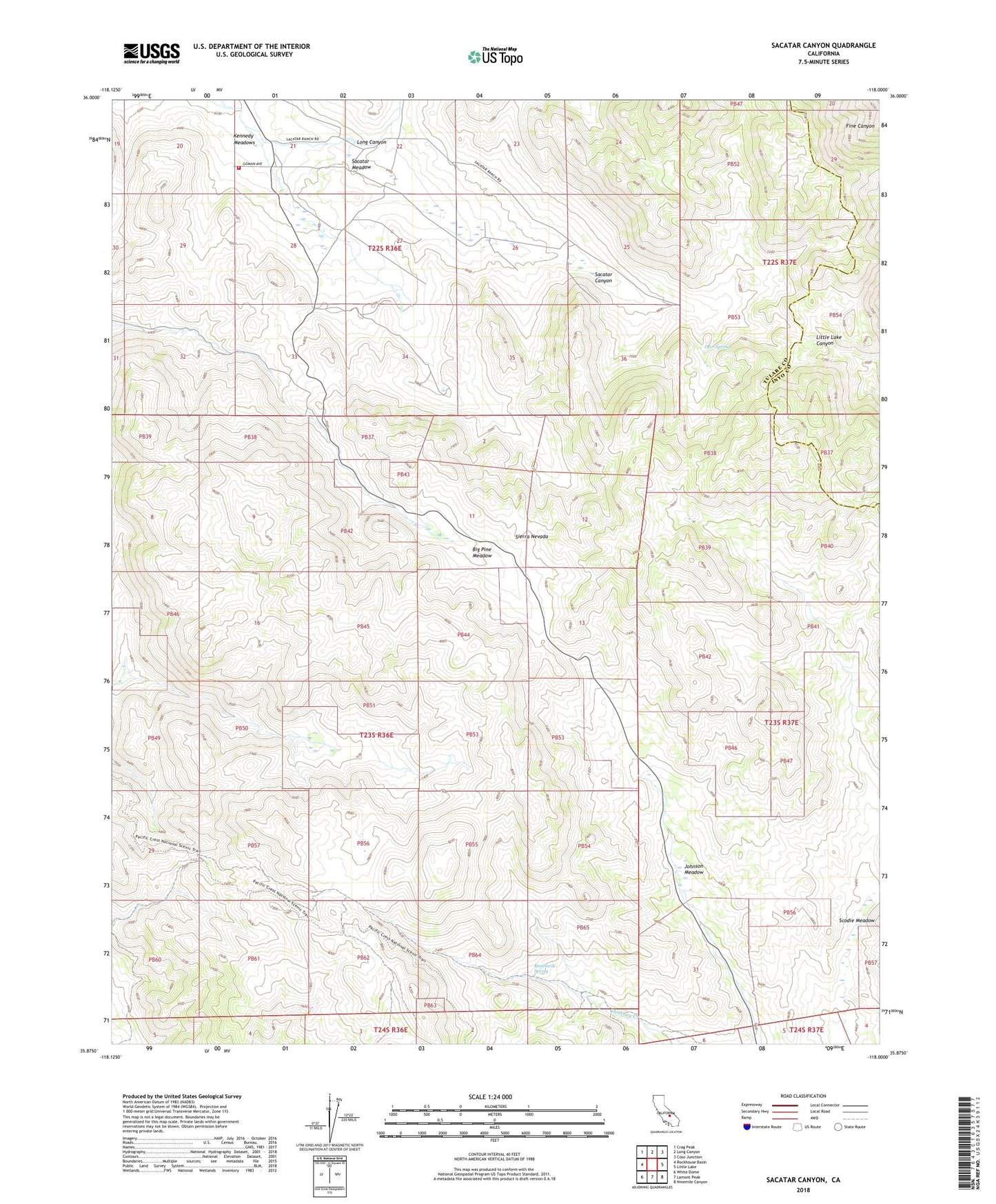 2021 topographic map quadrangle Sacatar Canyon in the state of California. Scale: 1:24000. Based on the newly updated USGS 7.5' US Topo map series, this map is in the following counties: Tulare, Inyo. The map contains contour data, water features, and other items you are used to seeing on USGS maps, but also has updated roads and other features. This is the next generation of topographic maps. Printed on high-quality waterproof paper with UV fade-resistant inks.