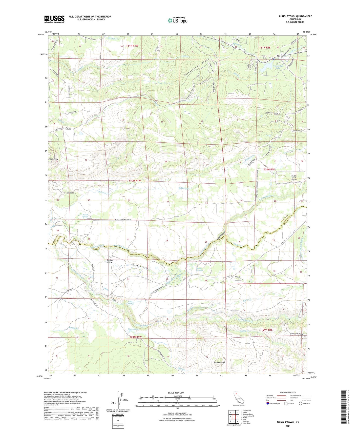 2023 topographic map quadrangle Shingletown in the state of California. Scale: 1:24000. Based on the newly updated USGS 7.5' US Topo map series, this map is in the following counties: Shasta, Tehama. The map contains contour data, water features, and other items you are used to seeing on USGS maps, but also has updated roads and other features. This is the next generation of topographic maps. Printed on high-quality waterproof paper with UV fade-resistant inks.
