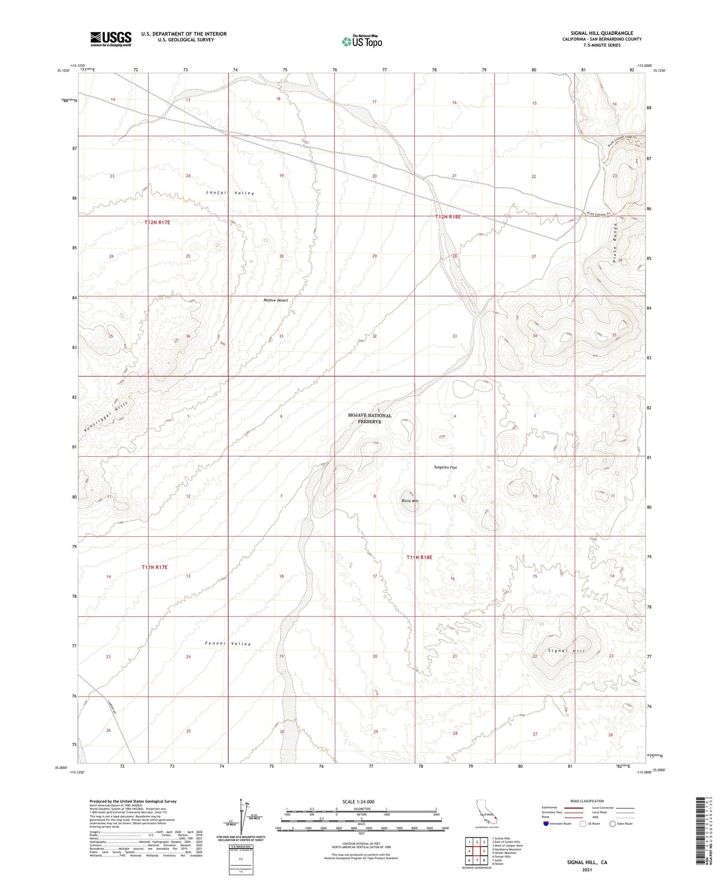 2021 topographic map quadrangle Signal Hill in the state of California. Scale: 1:24000. Based on the newly updated USGS 7.5' US Topo map series, this map is in the following counties: San Bernardino. The map contains contour data, water features, and other items you are used to seeing on USGS maps, but also has updated roads and other features. This is the next generation of topographic maps. Printed on high-quality waterproof paper with UV fade-resistant inks.
