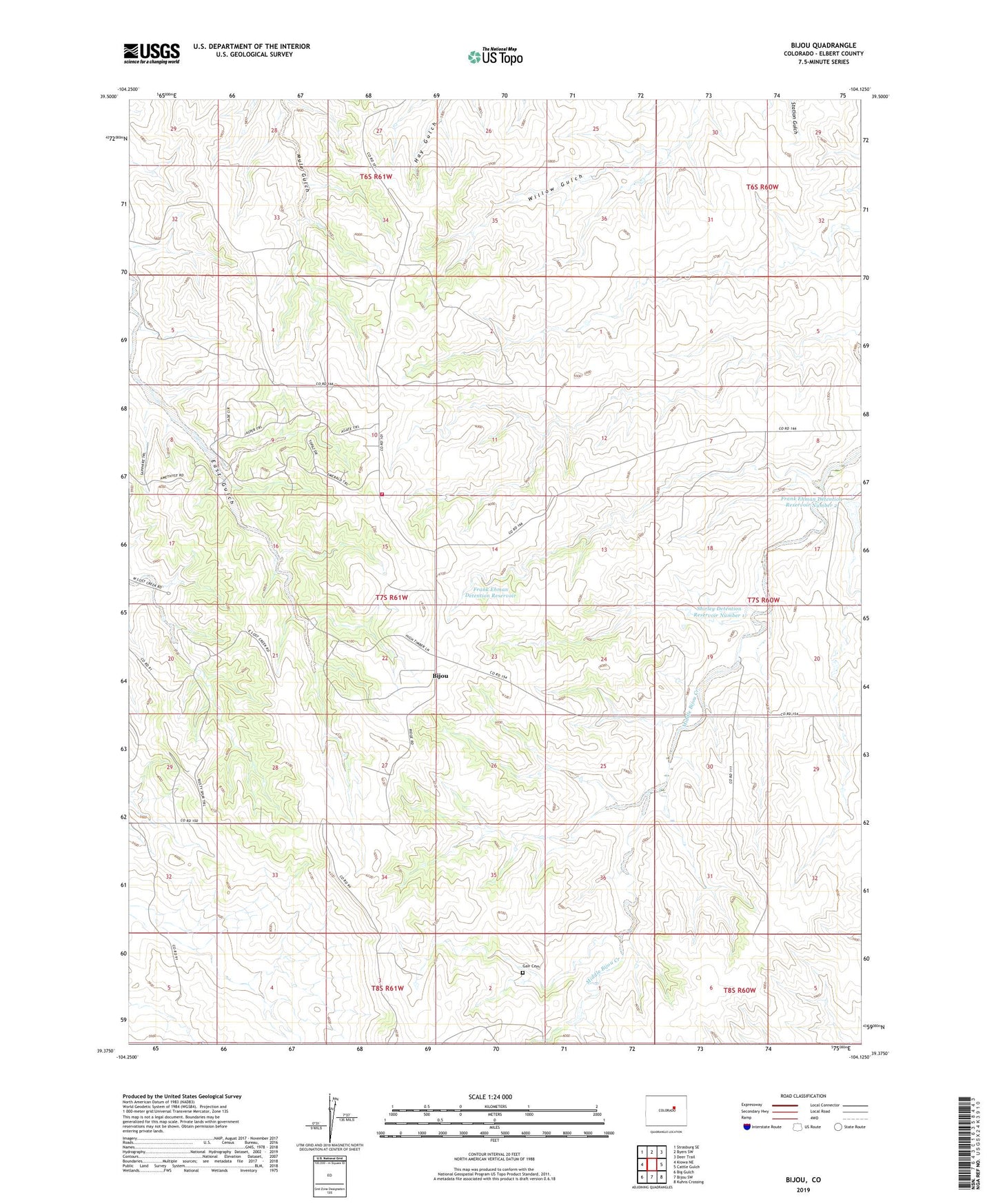 2022 topographic map quadrangle Bijou in the state of Colorado. Scale: 1:24000. Based on the newly updated USGS 7.5' US Topo map series, this map is in the following counties: Elbert. The map contains contour data, water features, and other items you are used to seeing on USGS maps, but also has updated roads and other features. This is the next generation of topographic maps. Printed on high-quality waterproof paper with UV fade-resistant inks.