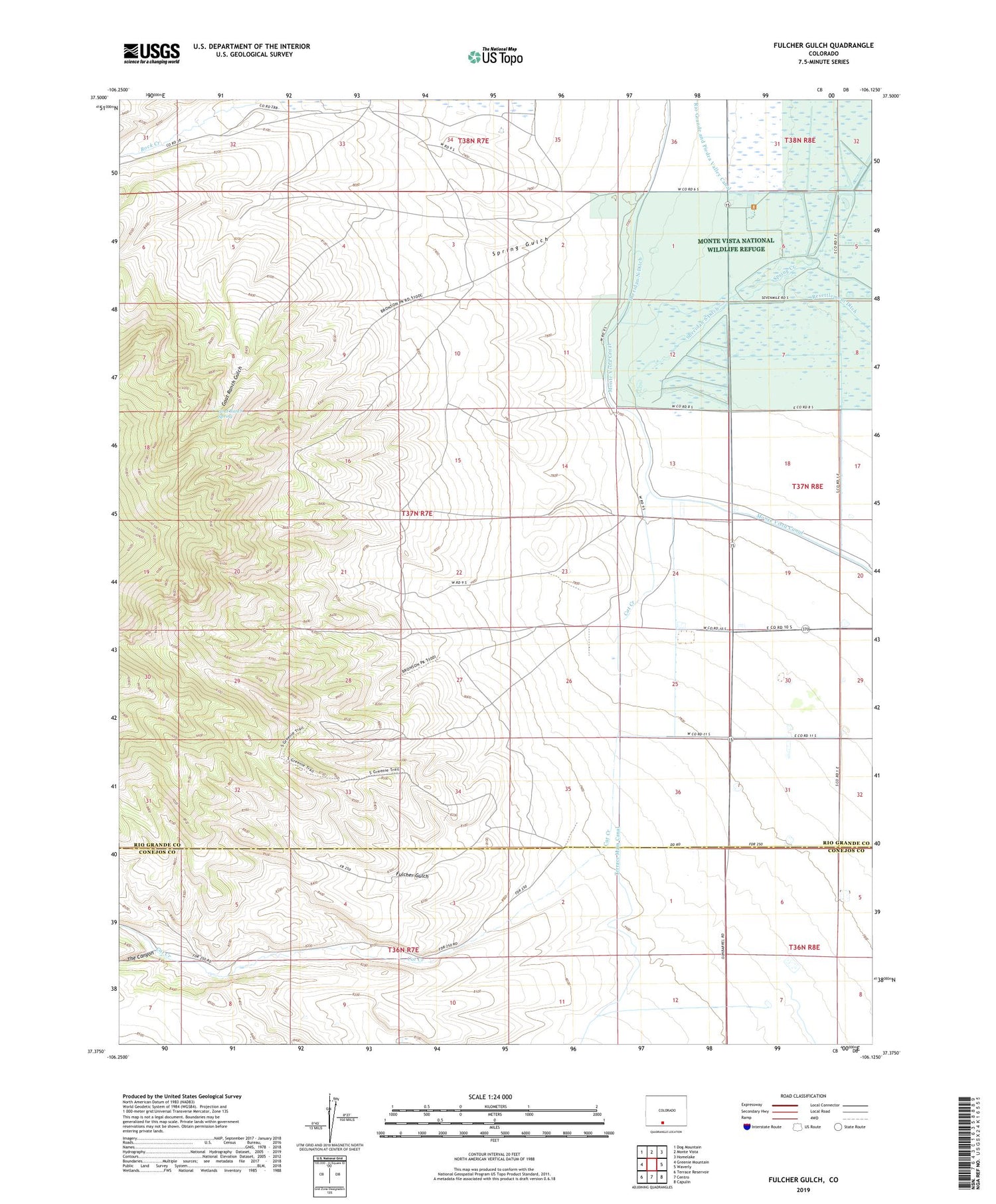 2022 topographic map quadrangle Fulcher Gulch in the state of Colorado. Scale: 1:24000. Based on the newly updated USGS 7.5' US Topo map series, this map is in the following counties: Rio Grande, Conejos. The map contains contour data, water features, and other items you are used to seeing on USGS maps, but also has updated roads and other features. This is the next generation of topographic maps. Printed on high-quality waterproof paper with UV fade-resistant inks.