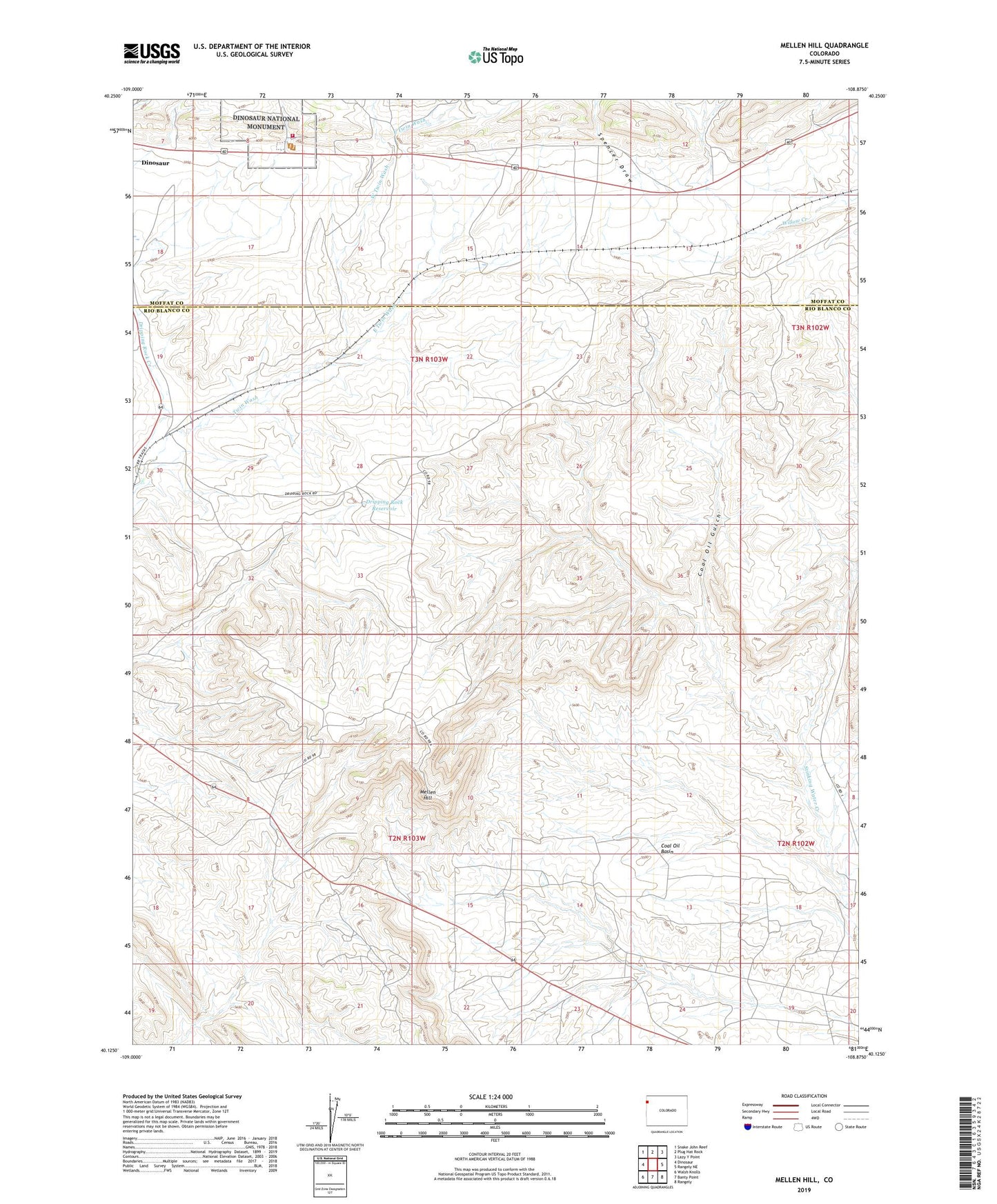 2022 topographic map quadrangle Mellen Hill in the state of Colorado. Scale: 1:24000. Based on the newly updated USGS 7.5' US Topo map series, this map is in the following counties: Rio Blanco, Moffat. The map contains contour data, water features, and other items you are used to seeing on USGS maps, but also has updated roads and other features. This is the next generation of topographic maps. Printed on high-quality waterproof paper with UV fade-resistant inks.