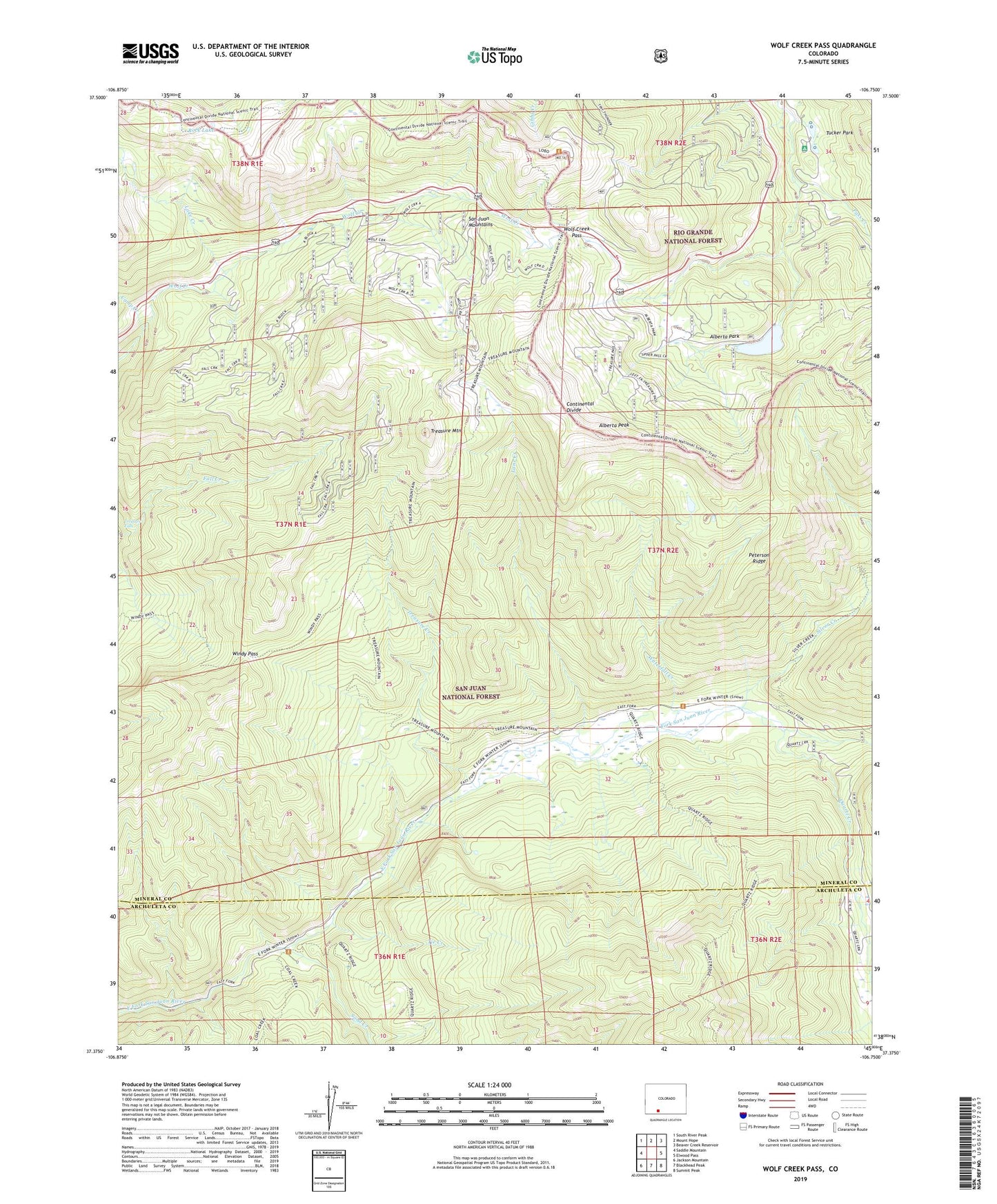 2022 topographic map quadrangle Wolf Creek Pass in the state of Colorado. Scale: 1:24000. Based on the newly updated USGS 7.5' US Topo map series, this map is in the following counties: Mineral, Archuleta. The map contains contour data, water features, and other items you are used to seeing on USGS maps, but also has updated roads and other features. This is the next generation of topographic maps. Printed on high-quality waterproof paper with UV fade-resistant inks.