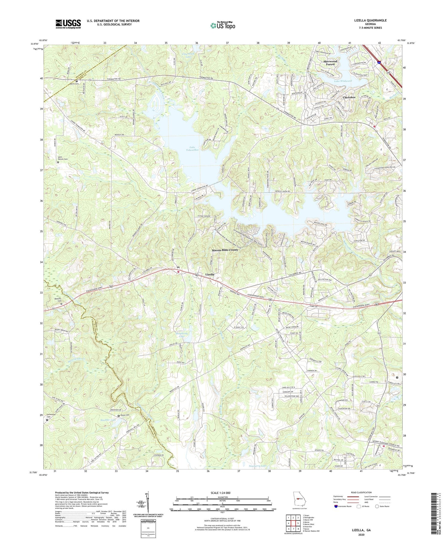 2024 topographic map quadrangle Lizella in the state of Georgia. Scale: 1:24000. Based on the newly updated USGS 7.5' US Topo map series, this map is in the following counties: Bibb, Crawford, Monroe. The map contains contour data, water features, and other items you are used to seeing on USGS maps, but also has updated roads and other features. This is the next generation of topographic maps. Printed on high-quality waterproof paper with UV fade-resistant inks.