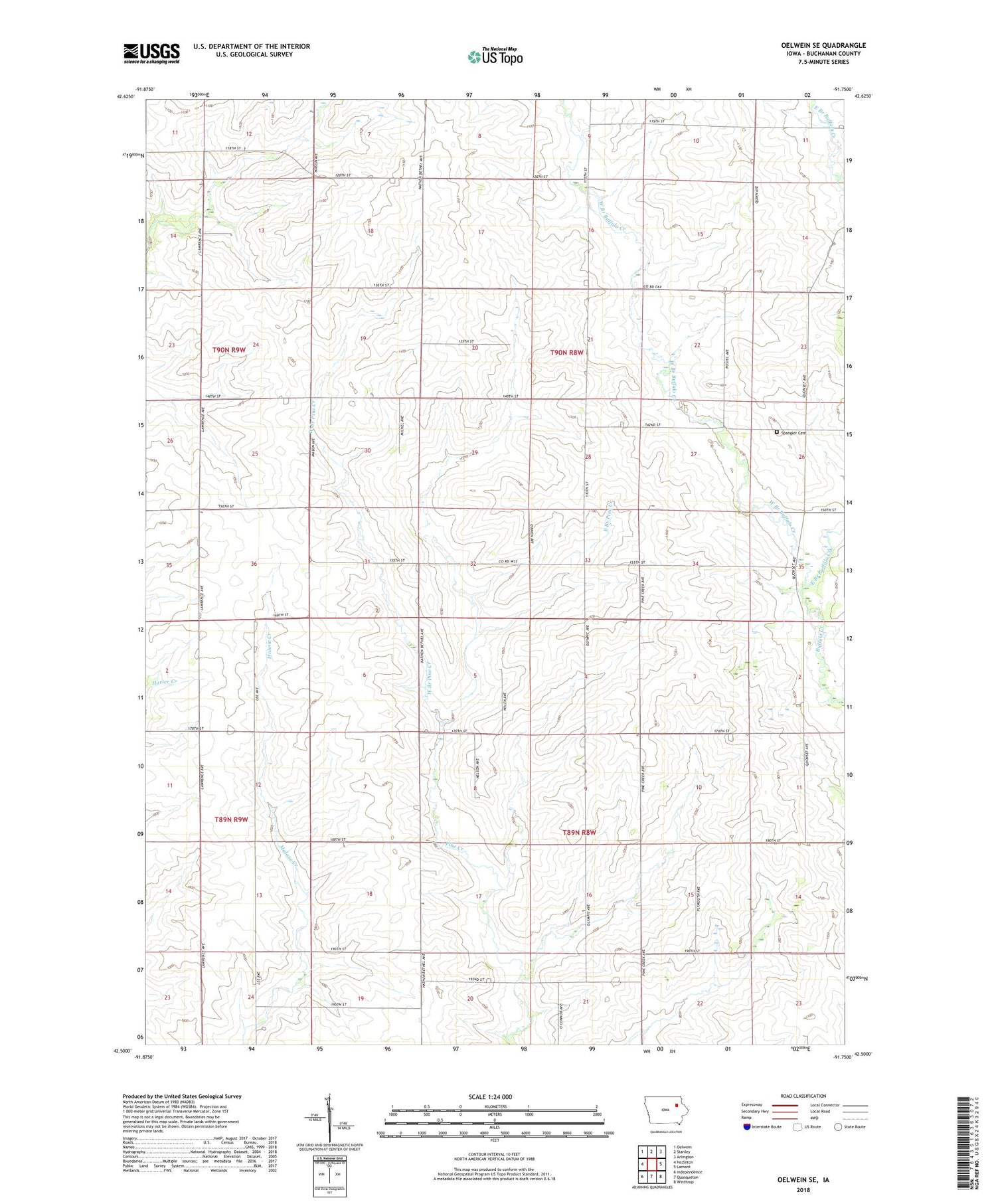 2022 topographic map quadrangle Oelwein SE in the state of Iowa. Scale: 1:24000. Based on the newly updated USGS 7.5' US Topo map series, this map is in the following counties: Buchanan. The map contains contour data, water features, and other items you are used to seeing on USGS maps, but also has updated roads and other features. This is the next generation of topographic maps. Printed on high-quality waterproof paper with UV fade-resistant inks.